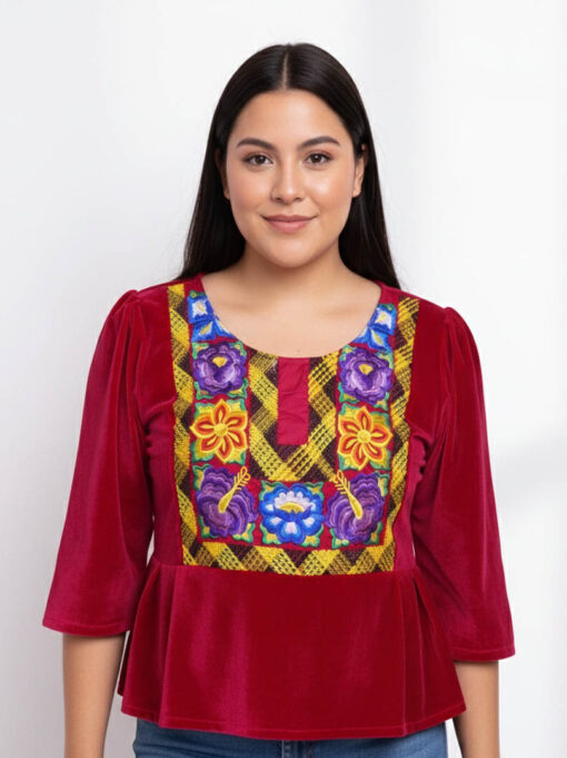 $720Blusa contemporánea tradicional elaborada con manta corrugada con bordado a mano en frente.