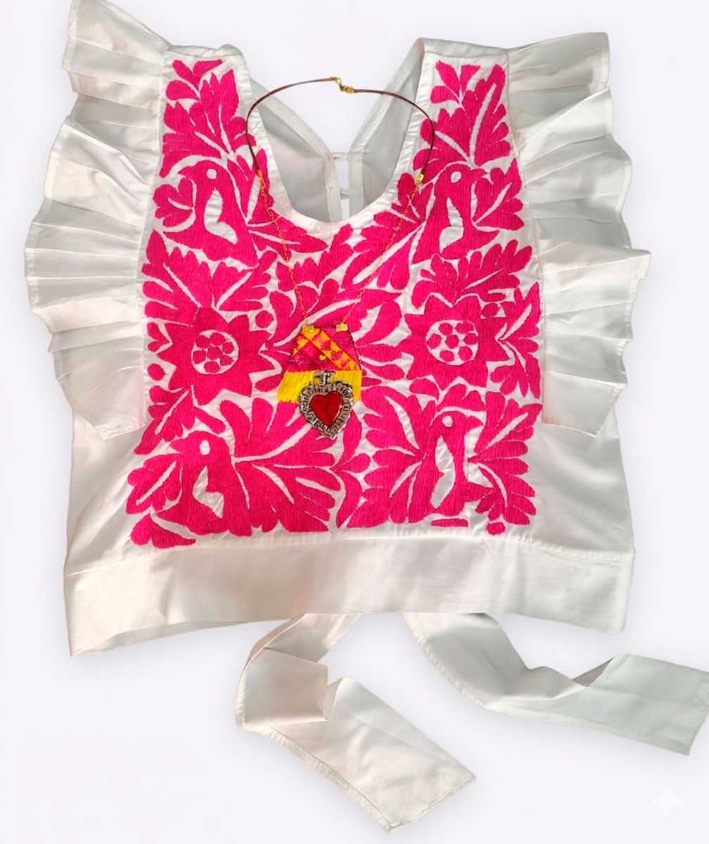 Blusa top contemporáneo elaborado de algodón bordado a mano por artesana Zapoteca.