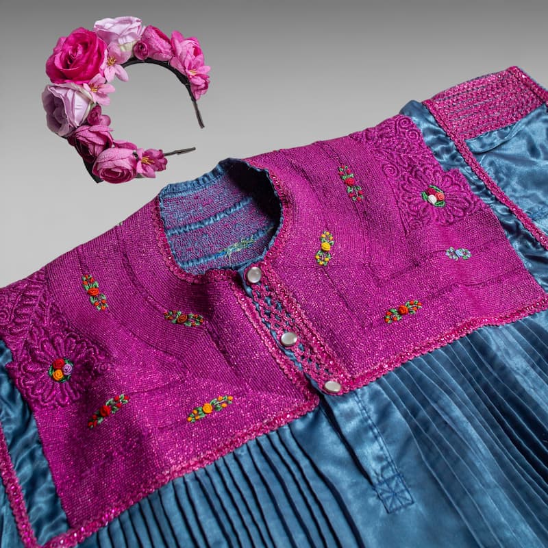 🎨 Color: Azul petróleo con bordados en rosa mexicano