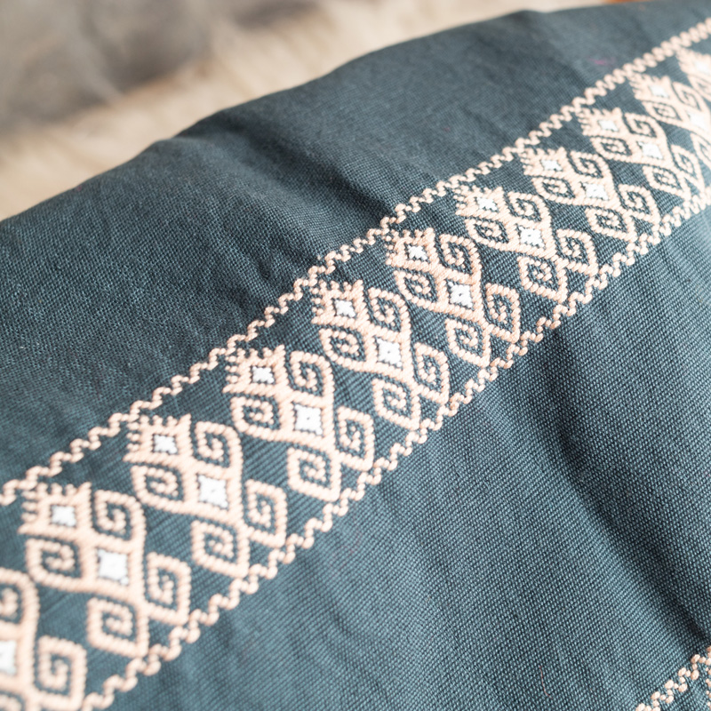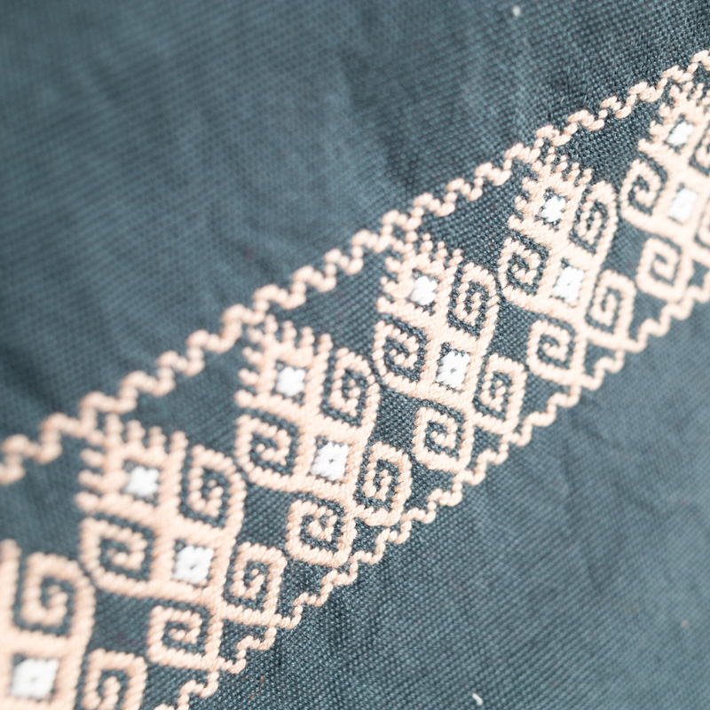 🎨 Color: Azul petróleo con bordados beige y blanco