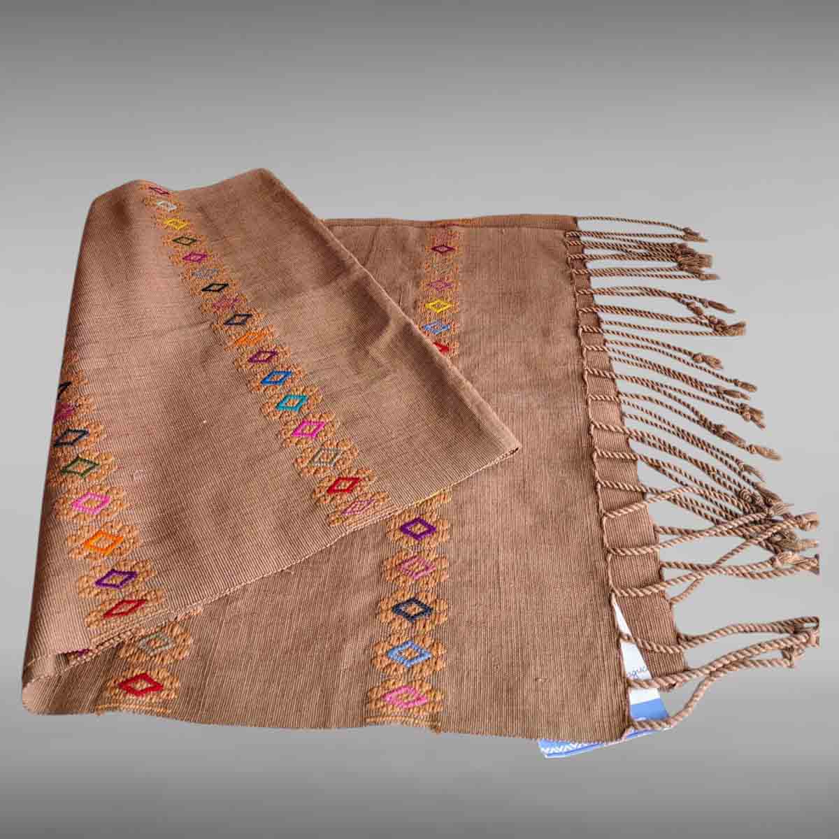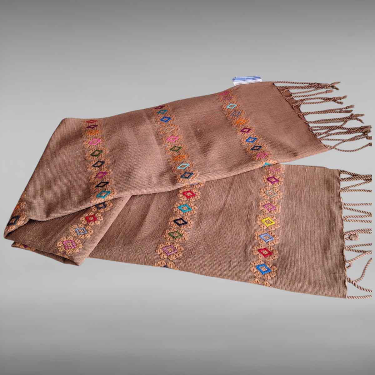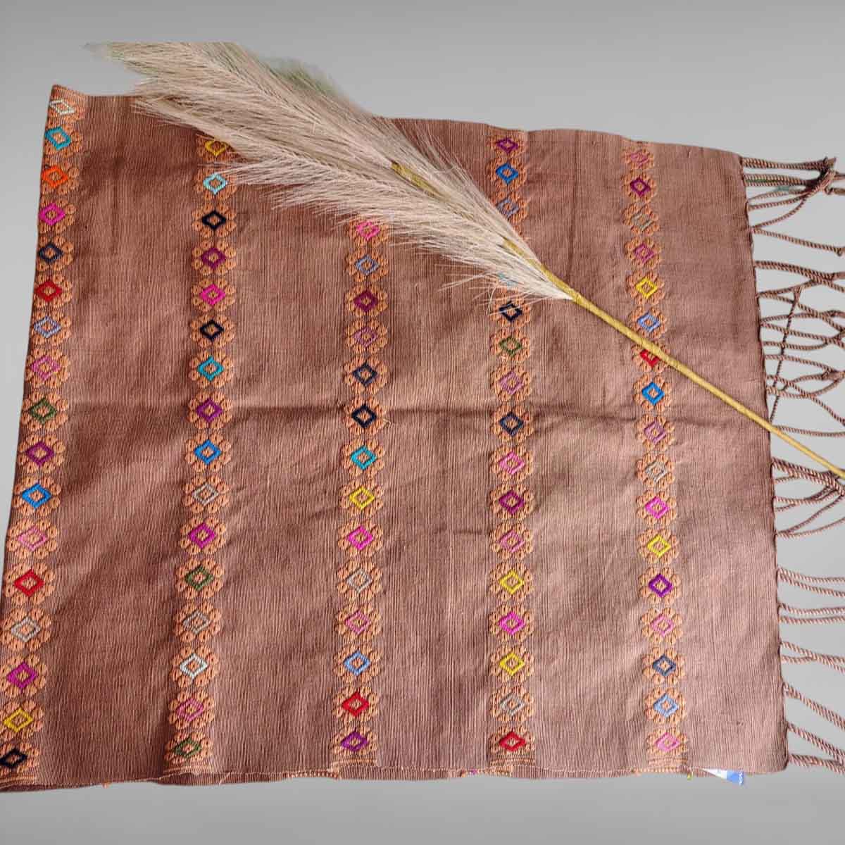 Un camino de mesa artesanal, perfecto para ambientes neutros que buscan un acento tradicional. Utilizando algodón y técnicas ancestrales como el brocado para crear diseños geométricos y grecas coloridas, reflejando la identidad cultural de la comunidad y añadiendo calidez a los espacios.