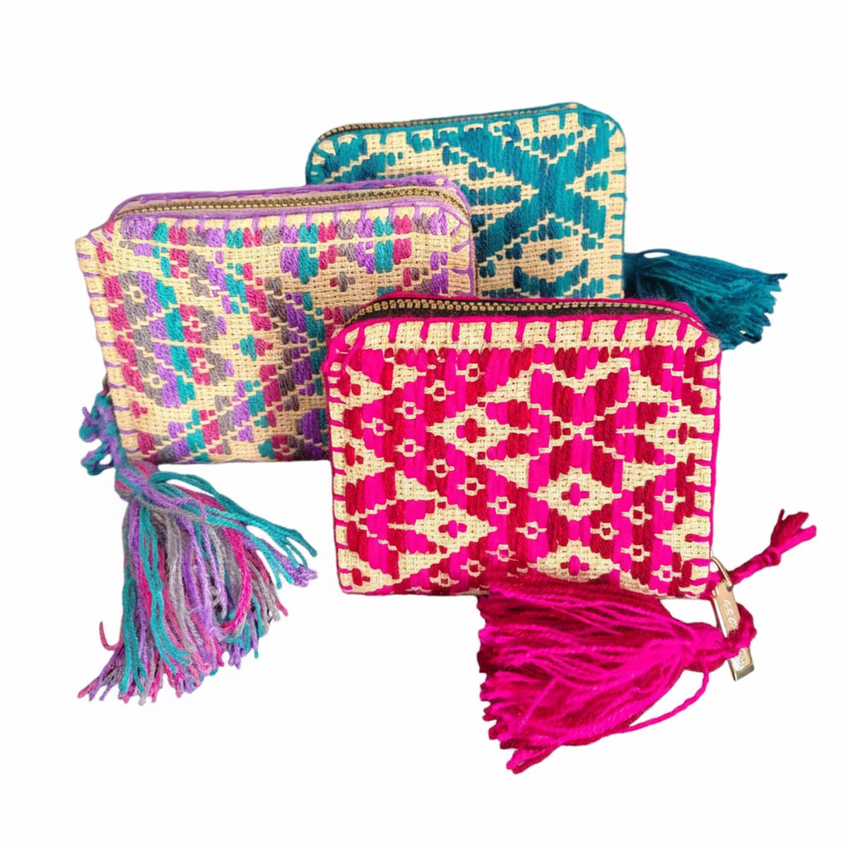 Cartera mini bordada con la técnica hilván en cuadrille Art. Mazahua.
