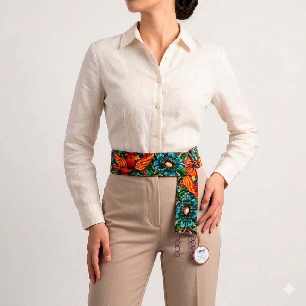 Cinturón de chaquira tradicional elaborado a mano.