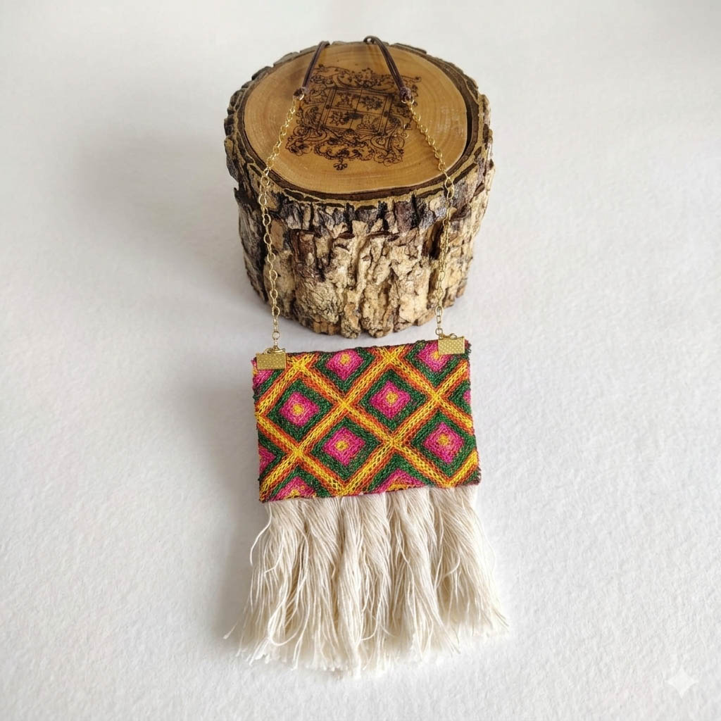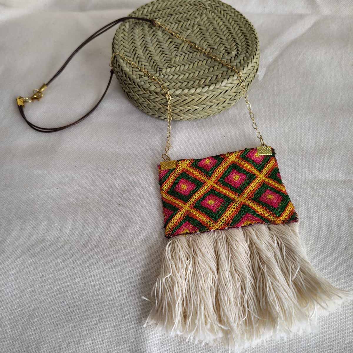 Técnica: elaborado a mano y textil bordado de cadenilla