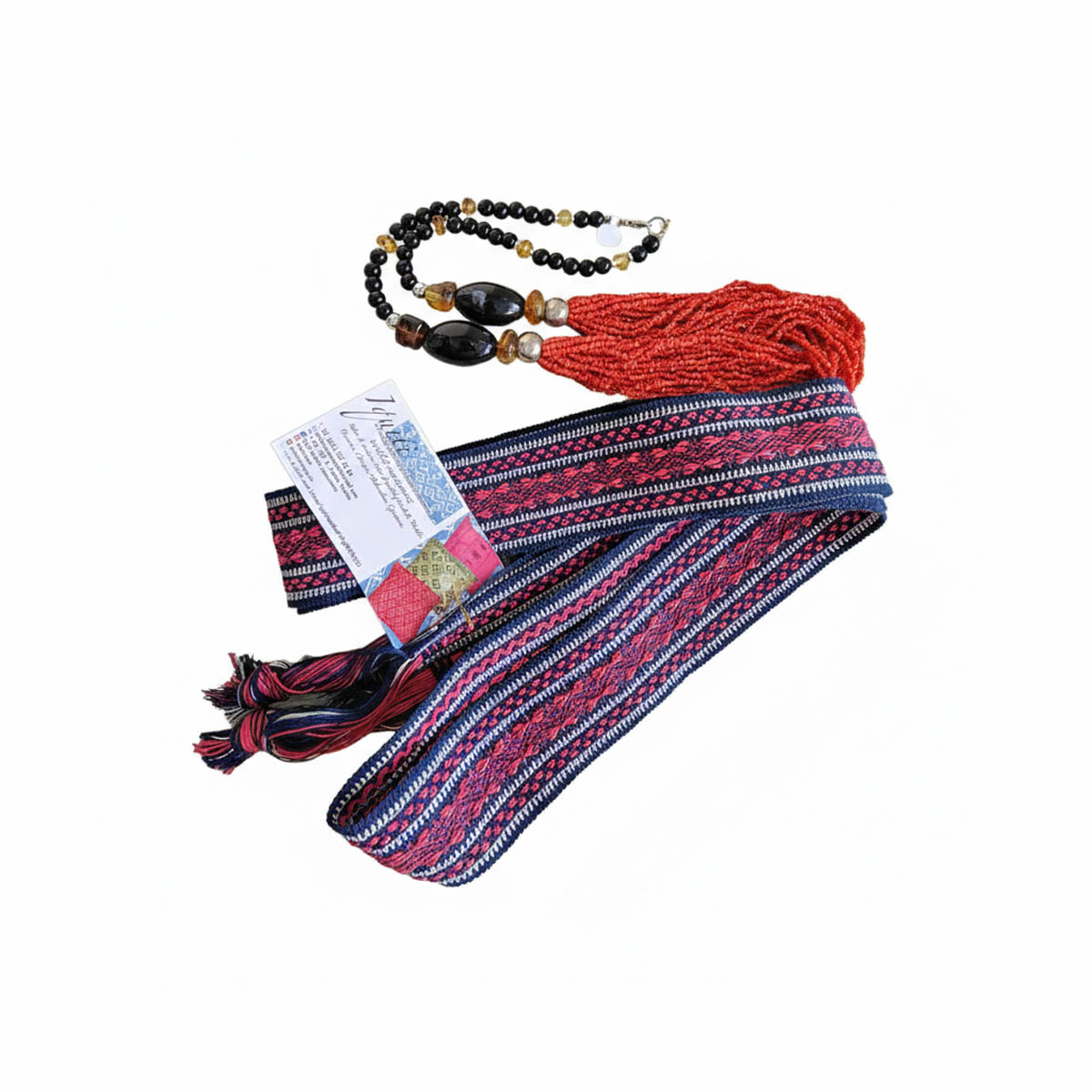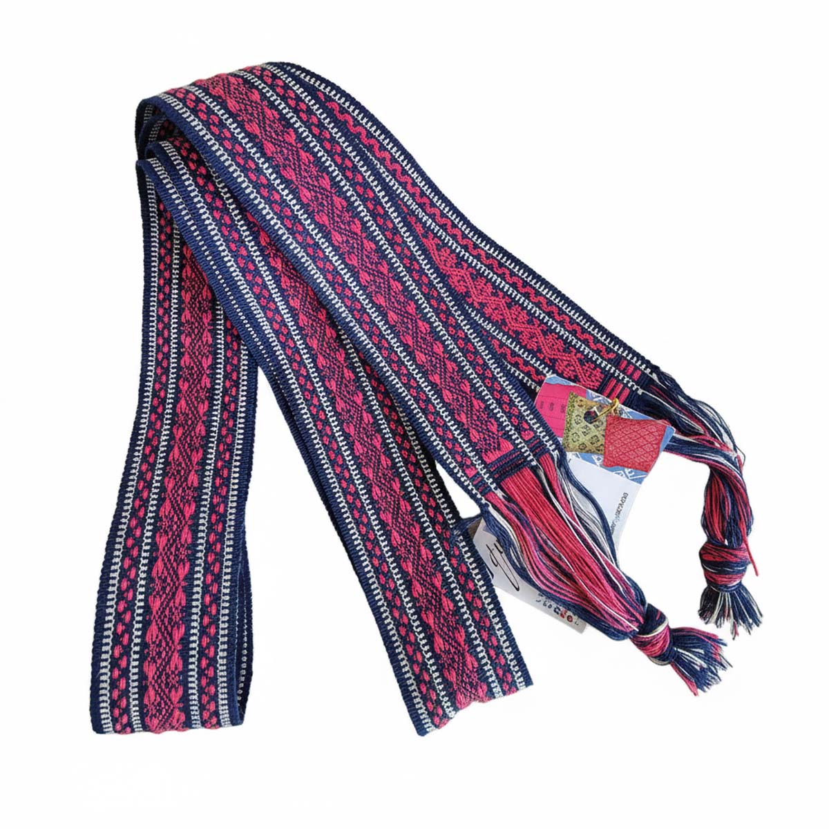 Faja extrafina elaborada artesanalmente mediante la técnica tradicional del telar de cintura, una práctica ancestral que refleja el conocimiento textil transmitido de generación en generación. Su tejido extrafino requiere gran precisión y habilidad, logrando una textura delicada, resistente y de alta calidad.