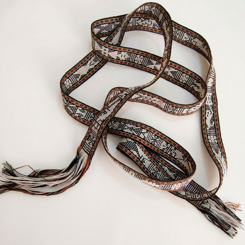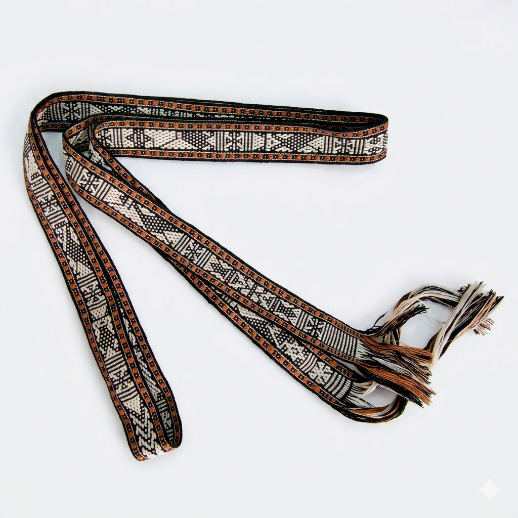 Faja extrafina elaborada en telar de cintura con tintes naturales.