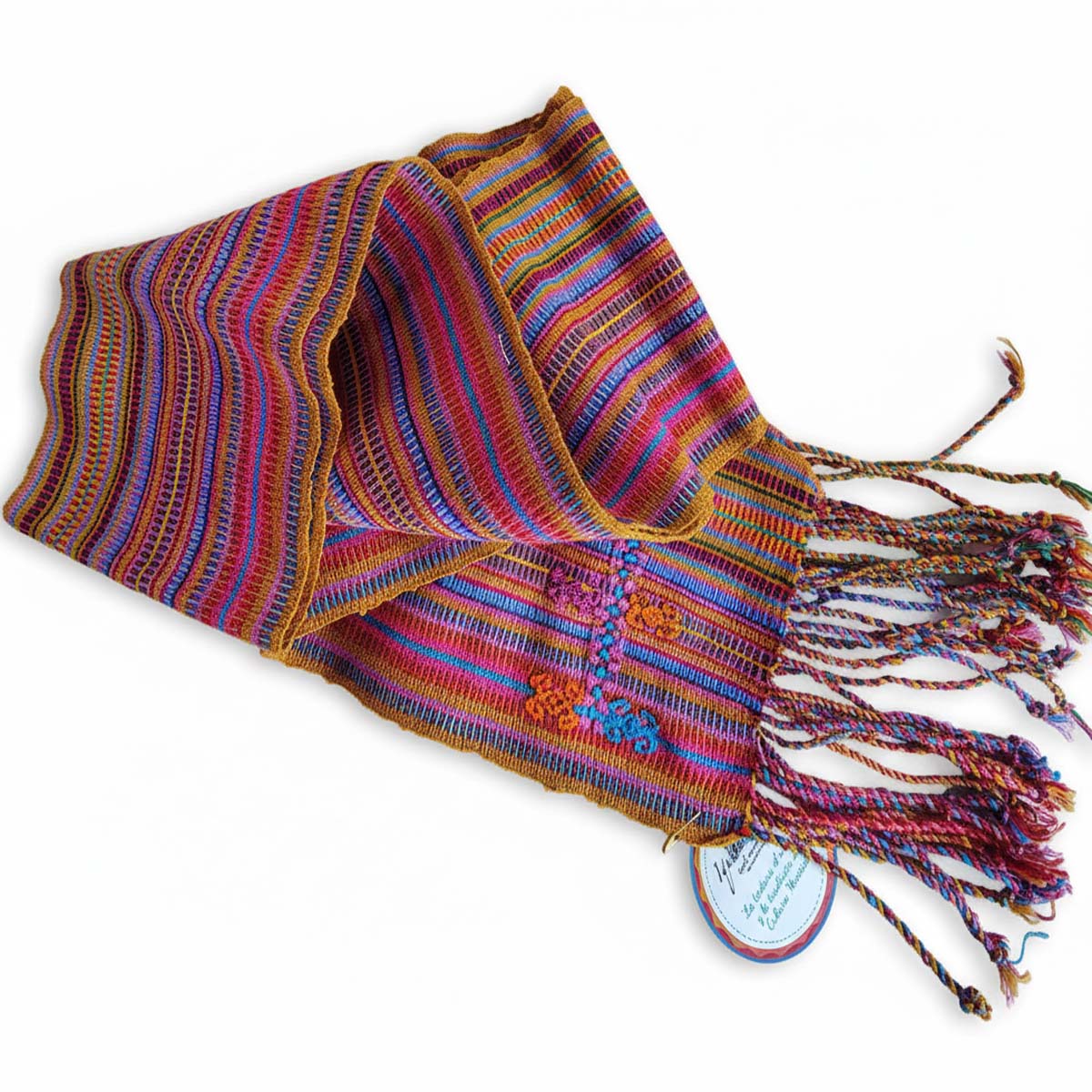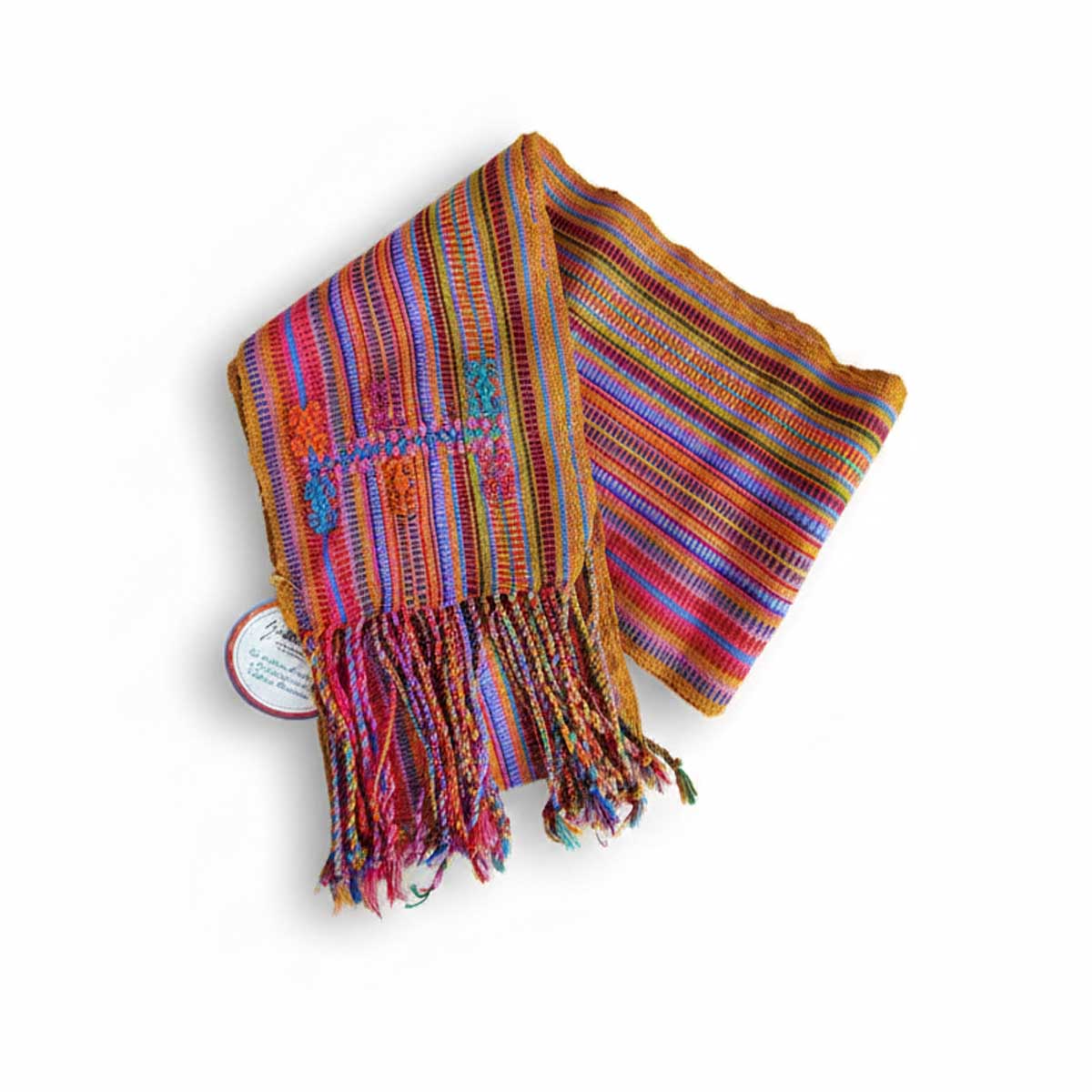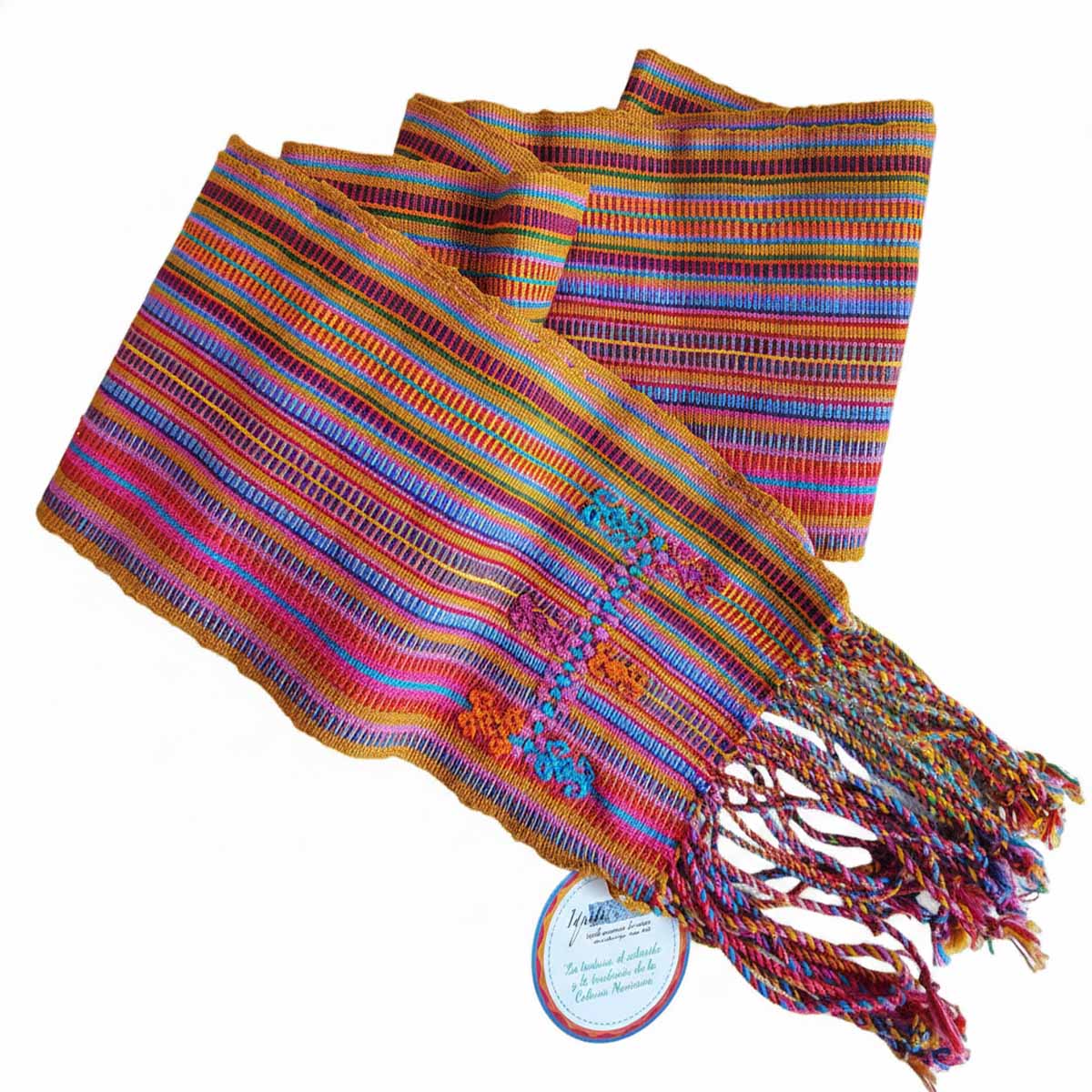 Faja tradicional elaborada en telar de cintura, multicolor por artesanas Tzotziles, reflejo de la identidad y herencia cultural del pueblo tzotzil. Sus colores y diseños representan la tradición y el trabajo textil transmitido de generación en generación.