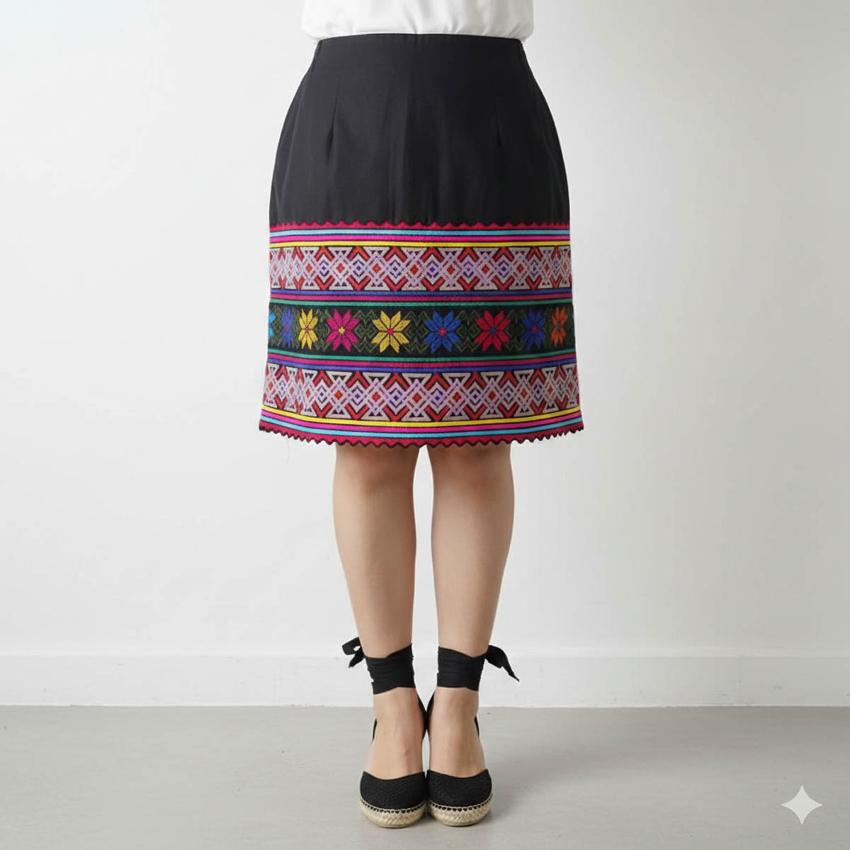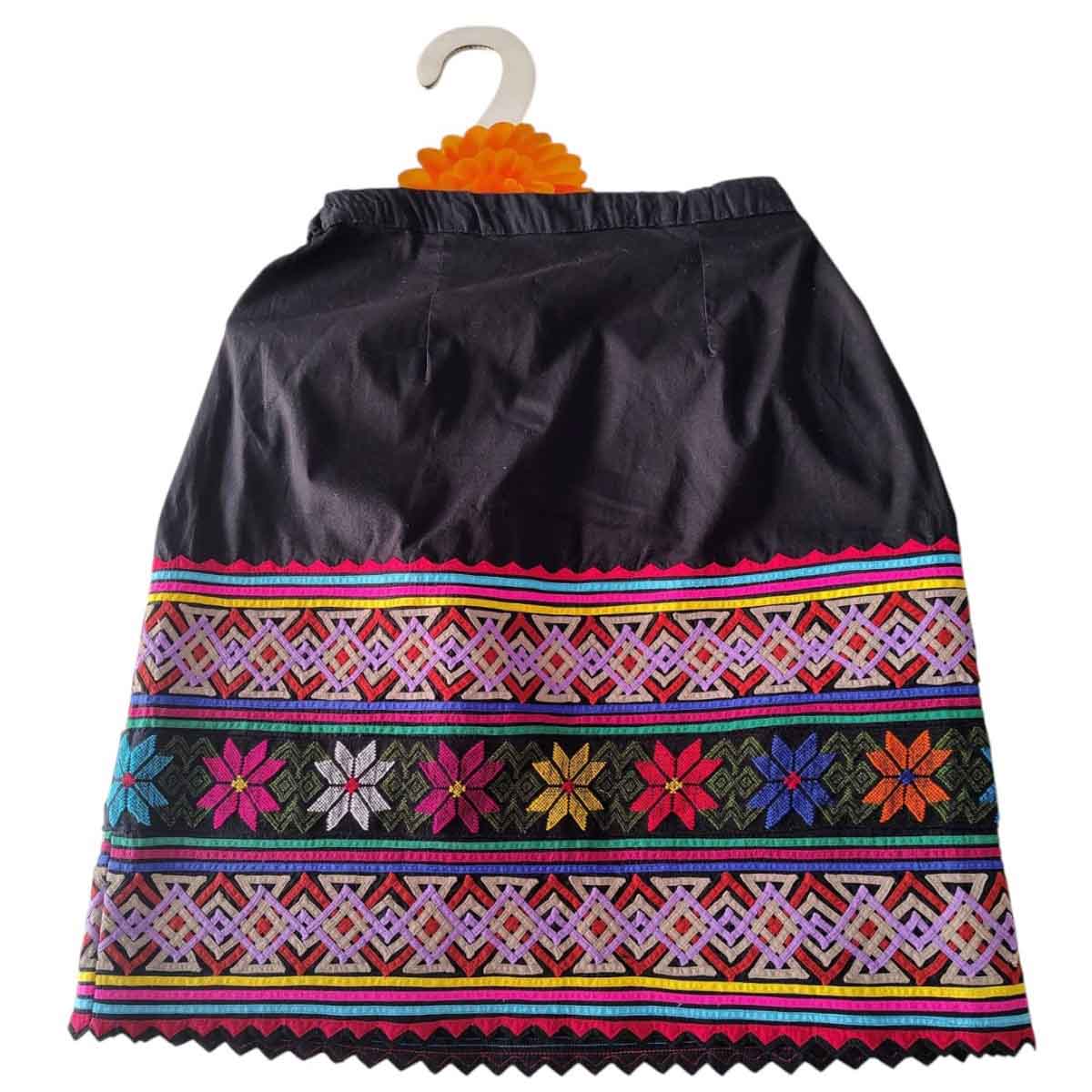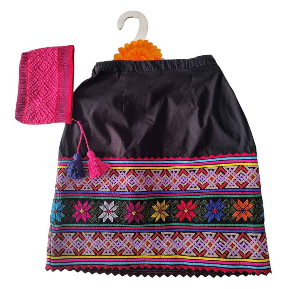 Falda amuzgos con bordado a telar de pedal y espiguilla de multicolor.
