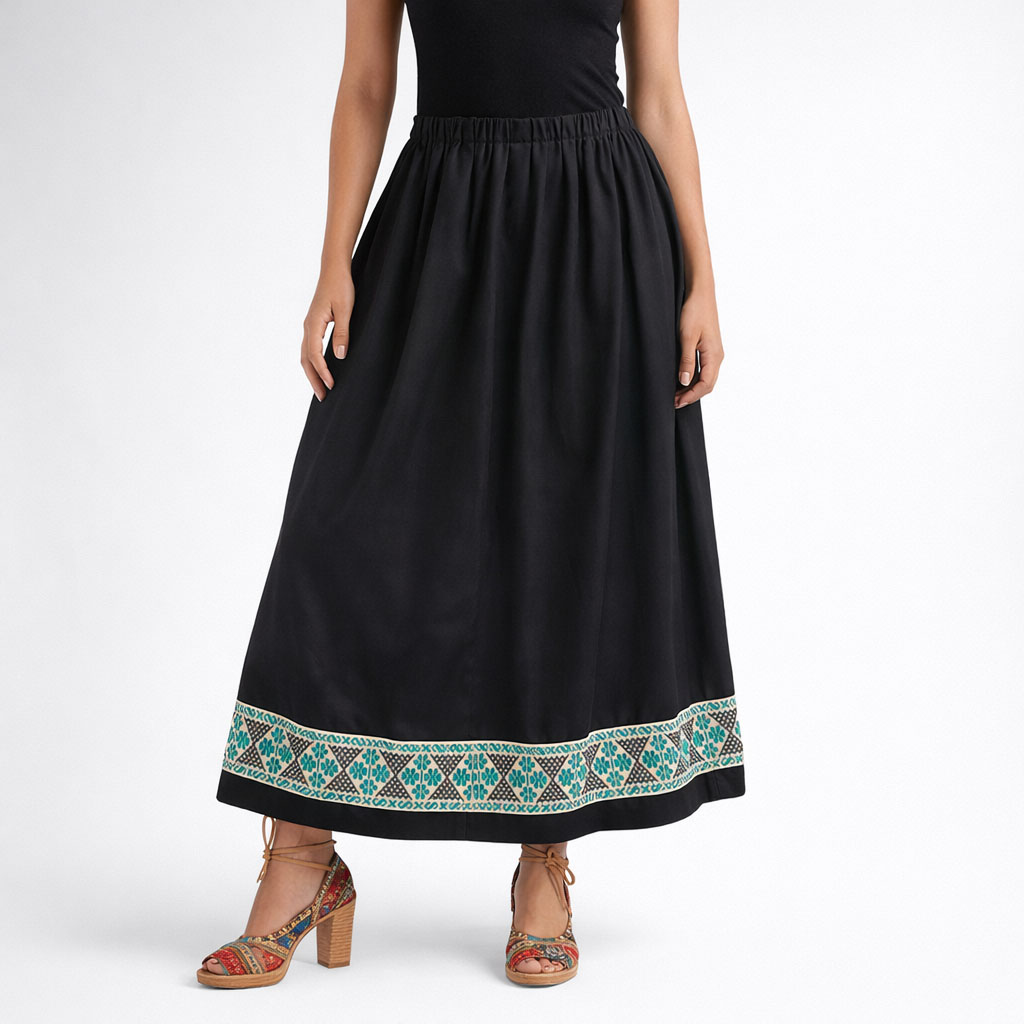 Falda Nahua tradicional con aplicación bordado a mano y resorte.
