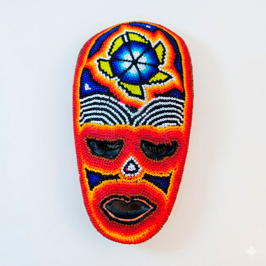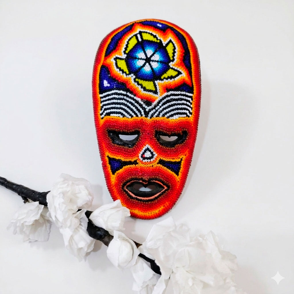 Mascara de madera tradicional “huichol” elaborado a mano con chaquira.