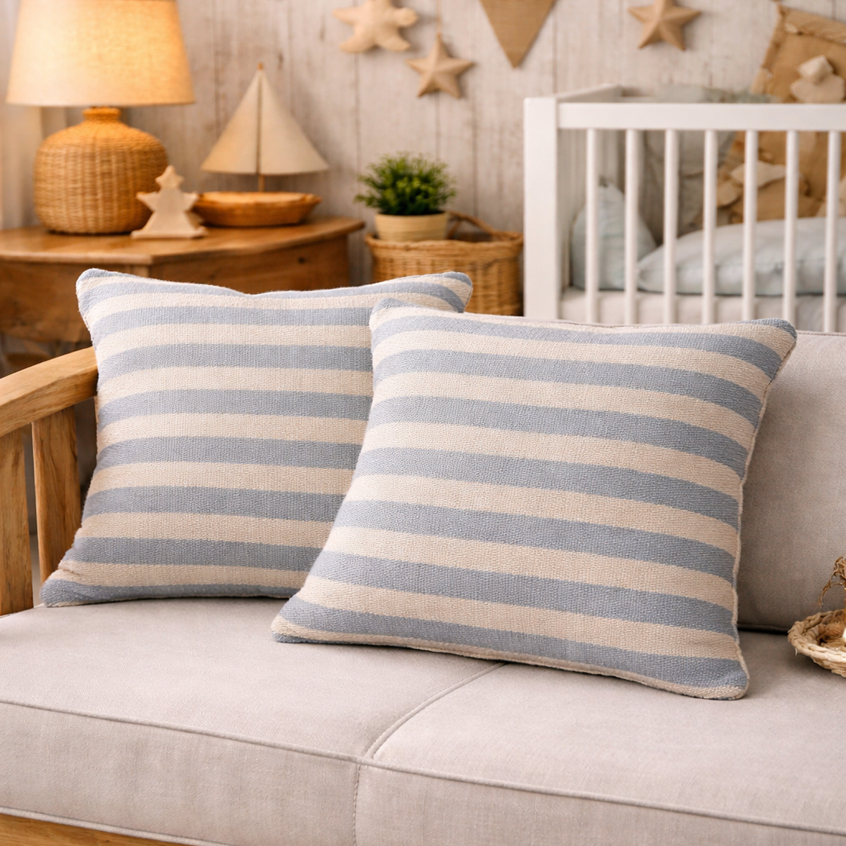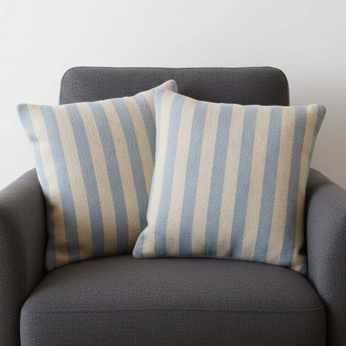 Par de cojines rayados tradicional, elaborados en telar de pedal de lana 100% natural, con tintes naturales artesana Aztatla.