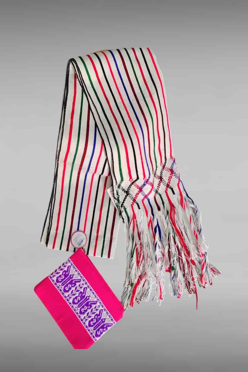 Rebozo tradicional de algodón elaborado en telar de cintura, artesano, Mixe Oaxaca.