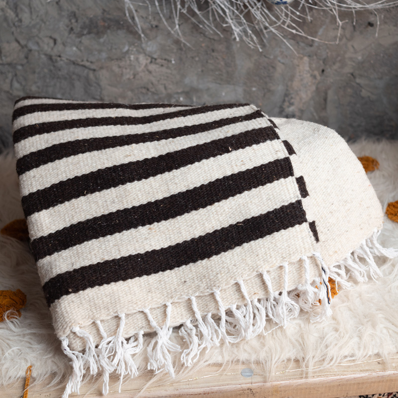 Tapete tradicional Nahua rayado con tintes naturales