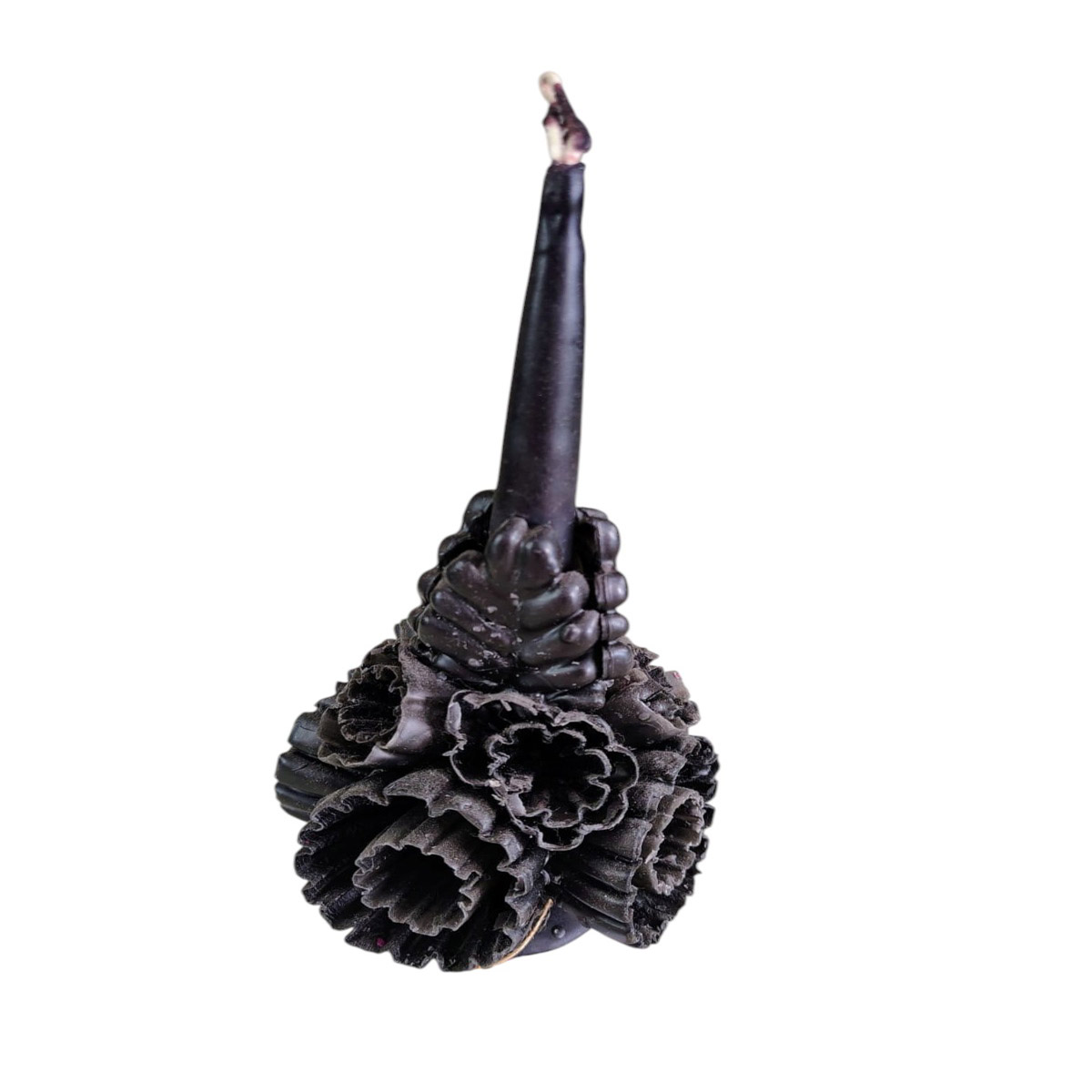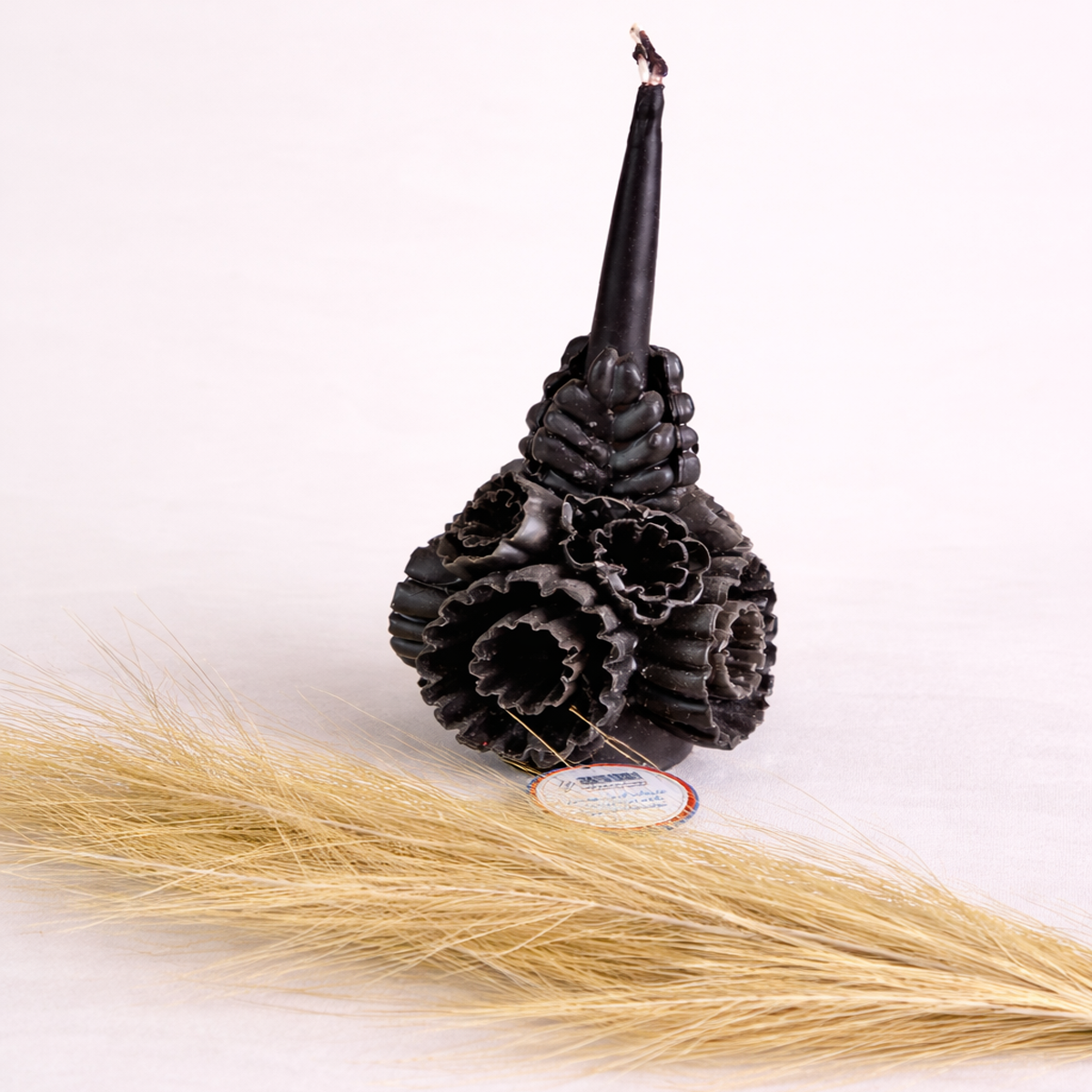 Velas escamadas de Tochimilco, Puebla, elaboradas artesanalmente con cera, siguiendo una técnica tradicional que distingue a esta región. Su proceso consiste en colocar, una a una, capas de cera en forma de escamas, creando relieves decorativos que dan a cada vela un carácter único y altamente simbólico.