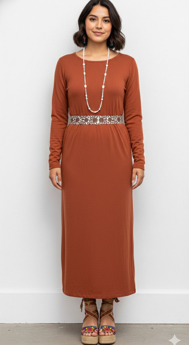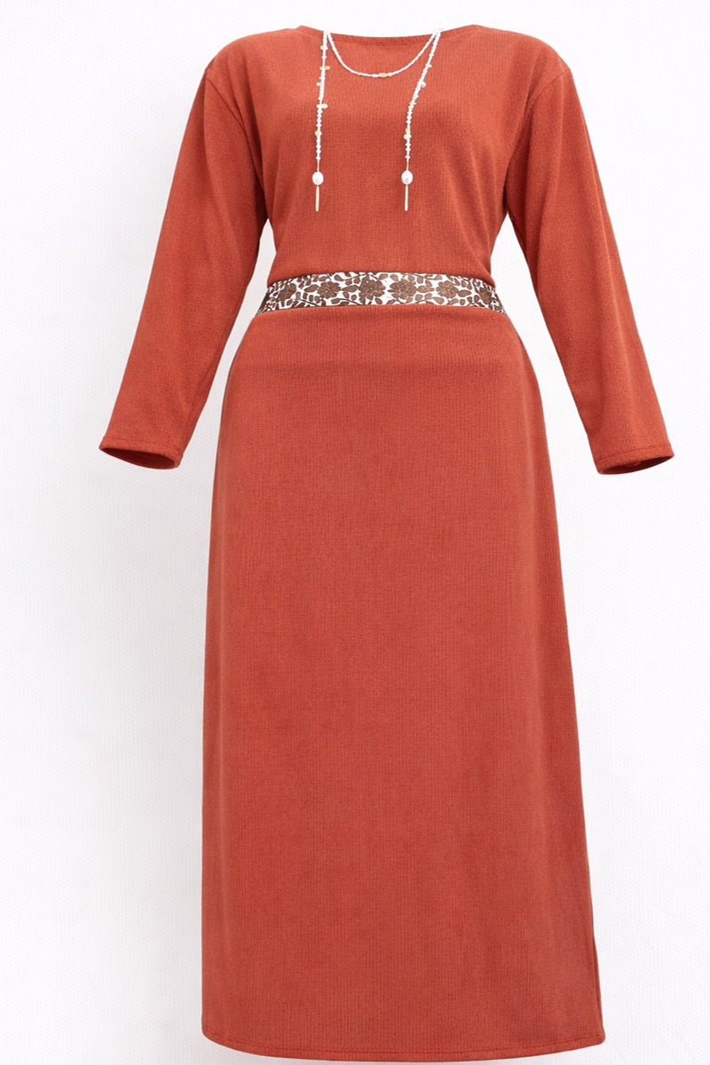 Vestido contemporáneo con bordado en cintura a mano con hilos de algodón.