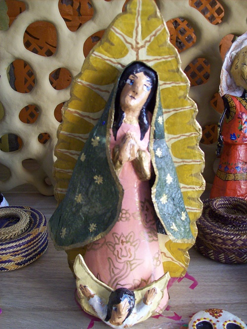 ✨ Esta imagen escultura de la Virgen de Guadalupe es una pieza única de cartonería. Ideal para decorar con identidad, historia y creatividad mexicana.